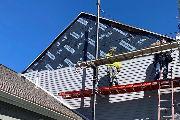 At the rear elevation, existing siding was removed and disposed of, followed by removal of the original water-resistive barrier. A liquid-applied air and vapor barrier (AVB) was installed to improve moisture and air control performance. New Everlast composite siding was then installed, with final color selections coordinated with the Owner, delivering a durable, low-maintenance exterior solution.